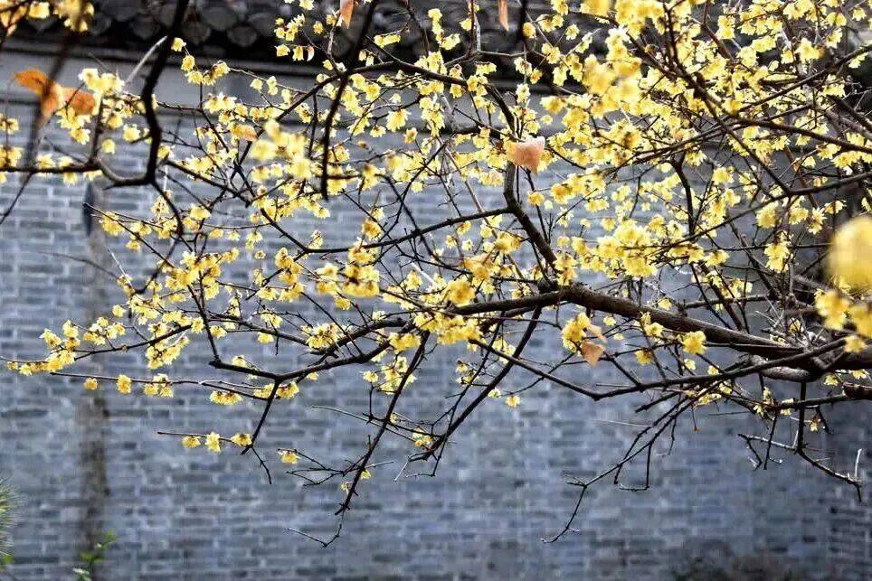 招隐寺梅岭既有春梅也有蜡梅,沿着山间步道前行,不经意间就会撞见一丛丛嫩黄,或倚着山石,或挨着古寺围墙,在苍翠松柏的映衬下更显清丽。